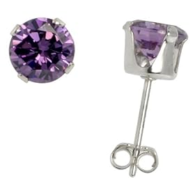 1 Carat size (6 mm) Brilliant-Cut Amethyst colored Sterling Silver Cubic Zirconia Stud Earring