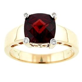 14-Karat Yellow Gold Bar Cut Garnet and Diamond Ring