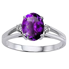 Genuine Ametyst and Diamond Ring crafted in 14 kt Yellow Gold 1 Stone 1.35 Carats Amethyst Oval 8x6 mm. Color: Medium to Dark Violet Clarity: Eye Clean, 2 Stones 0.06 Carats Round Diamonds Color: I Clarity: SI1 - SI2 Made in USA - FREE LIFETIME WARRANTY, GIFT BAG AND GIFT CARD!. Our Style Number 21701
