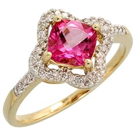 14k Gold Stone Ring, w/ 0.18 Carat Brilliant Cut Diamonds & 0.96 Carat 6mm Cushion Cut Pink Topaz Stone, 7/16" (11mm) wide