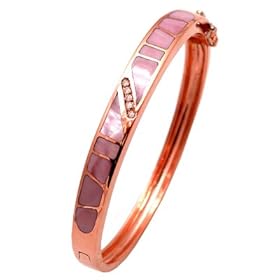 14K Rose Gold, Mother of Pearl and Diamond Bangle Bracelet