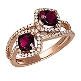 Like luscious black cherries, the twin pink tourmalines in this 14 karat gold ring exude a rich sweetness. These square-cut gems strike a perfect balance, each framed by sparkling diamonds and set in overlapping gold bands.