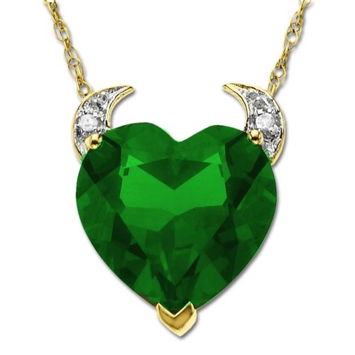 14k Yellow Gold Created Emerald and Diamond Devil Heart Pendant, 18"