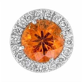0.11Ct.T.W. Round Brilliant Cut Diamonds, 1.20Ct.T.W. Mandarin Garnet, 18K White Gold. Mandarin Garnet and Diamond Fashion Pendant This lovely pendant with 1.20 carat round Mandarin Garnet as a center stone is accented with 0.11 carat round brilliant cut diamonds. Fashioned in gleaming 18K White Gold. Perfect for everyday or evening wear.