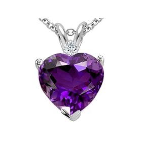 Genuine Amethyst and Diamond Heart Pendant crafted in 14 kt White Gold Dimensions: 14 mm long x 8 mm wide.1 Stone 1.90 Carats Heart Shape 8mm. Color: Violet Clarity: Clean, 1 Stone 0.02 Carats Round Diamonds Color: I Clarity: SI Free 18 inches 14kt gold chain included. - FREE LIFETIME WARRANTY, GIFT BAG AND GIFT CARD!. Our Style Number 25406