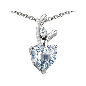 925 Sterling Silver 14K White Gold Plated Genuine Heart Shaped Aquamarine Pendant crafted in 14k White Gold Plated Silver Dimensions: Width: 0.50 Inches Length: 0.75 Inches1 Stone 1.90 Carats 8 mm Heart Shaped Color: Faint Blue Clarity: Clean, 1 Stone 0.05 Carats White Quartz Color: Colorless Clarity: Clean 18 Inch 925 Sterling Silver Chain FREE With Order - FREE GIFT BAG! FREE GIFT CARD!. Our Style Number 26736