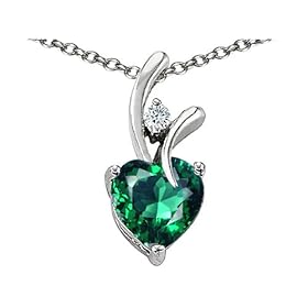 925 Sterling Silver 14K White Gold Plated Created Heart Shaped Emerald Pendant crafted in 14k White Gold Plated Silver Dimensions: Width: 0.25 Inches Length: 0.75 Inches1 Stone 1.90 Carats 8 mm Heart Shaped Color: Green Clarity: Clean, 1 Stone 0.05 Carats White Quartz Color: Colorless Clarity: Clean 18 Inch 925 Sterling Silver Chain FREE With Order - FREE GIFT BAG! FREE GIFT CARD!. Our Style Number 26730