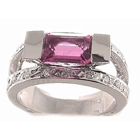 This tourmaline & diamond gem stone ring is elegant and it is one of a kind. Center stone set beautifully that two bars are holding securely the Pink Tourmaline which weighs 1.75ct.and has no inclusions to the naked eye. Clarity of these diamonds are Vs2-Si1.and color of H-I which weighs.44ct. The ring is made out of 14K white gold and weighs 8.9grams.