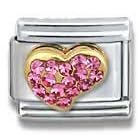 Clearly Charming October Gold Pink Tourmaline CZ Heart Birthstone Heart Italian Charm Bracelet Link