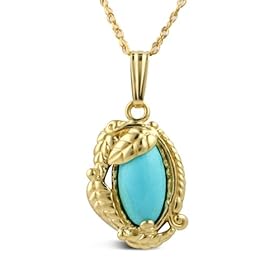 The lovely pendant surrounds a polished oval gemstone of clearest sky-blue genuine turquoise with elegantly detailed 14k gold leaves. A classic motif in southwestern design, leaves represent nature's beauty and life-sustaining gifts. The turquoise gemstone brings good fortune and a long and healthy life to its wearers. The 1" pendant dangles from an 18", 1mm 14k gold rope chain with a spring ring closure. Made in New Mexico, USA.