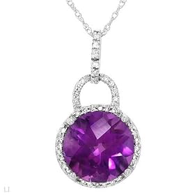 Nice Brand New Necklace With 5.10ctw Precious Stones - Genuine Diamonds and Amethyst Beautifully Crafted in 14K White Gold Length 18in - Certificate A