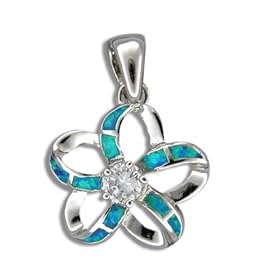 This beautiful Plumeria Pendant has a Blue Opal inlay on each one of the plumerias pedals and a CZ in the middle of it. This pendant is finished in Rhodium to avoid tarnishing. This is the perfect gift for that special mom. Chain is included. Mothers day is May 10.
