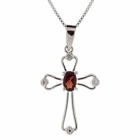 A Genuine Garnet stone is set regally in the center of A Delicate and Elegant Genuine Diamond Accent Cross Pendant.