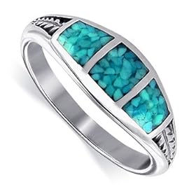 Adorable Ring made of genuine Turquoise Gemstone Chip Inlay in Genuine .925 Sterling Silver.