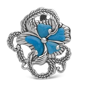 Turquoise pendant blooming in sterling silver is a sculptural design by Carolyn Pollack. Genuine turquoise cut and sized just perfectly creates the petals of this beautiful sterling silver floral motif pendant. The detailed sterling work is not only on the front but embraces the entire piece in the back as well including the hinge bail. Your soon to be favorite piece of turquoise jewelry! Measures 2" L x 1¾" W and is wearable on your favorite beads or chain. Handcrafted with love from real turquoise and sterling silver in New Mexico, USA.
