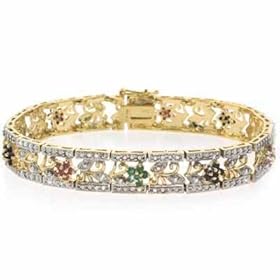 Vermeil (24K Gold over Sterling Silver) Genuine Diamond Ruby, Sapphire, and Emerald stone Flower Bracelet