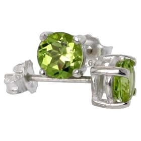 The Stones are Very Good Quality Peridots and the Settings are Sterling Silver. Each Stone is Hand Set on a Basket Setting For Excellent Look and Security. Very well finished and polished. The Stones Are 5 mm each (1/2 carat size).