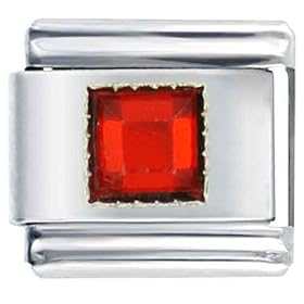 January Garnet Birthstone Square Italian Charms Bracelet Link