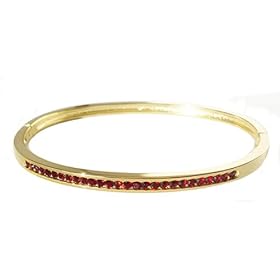 Silver Hinged Bangle Bracelet - Garnet