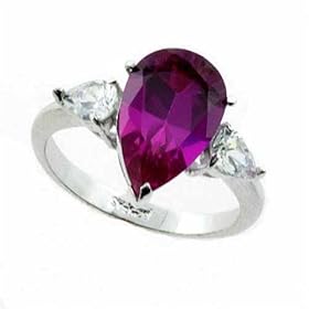 The design was inspired by the engagement ring Nick Lachey gave to famous singer Jessica Simpson! An absolutely divine Ring! A Beautiful Lab Created Pink Sapphire stone is set in a delicate Teardrop shape in the center of two exquisite Simulated Diamond CZ Teardrops.!!