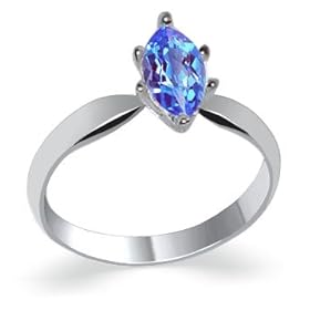 Adorable Sterling Silver Solitaire Band Marquise cut Blue Cubic Zirconia Ring