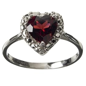 Sterling Silver Genuine Garnet And Diamond Heart Ring - Silver ( 7" )