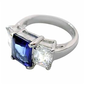 Sterling Silver Rectangular Blue & Clear CZ Ring