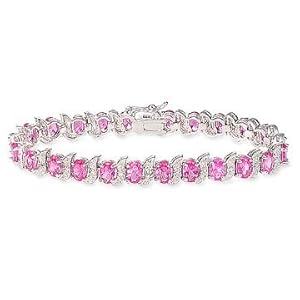 gorgeous 14 ? carat created pink sapphire bracelet. Crafted in sleek sterling silver and featuring sparkling diamond accents, it is as stunning as it is affordable. Buy one today! ICE Style: BSW_015032.