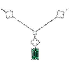 925 Sterling Silver Emerald Cut Created Emerald Necklace crafted in