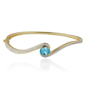 diamond-studded bars. Fashioned in shiny gold-dipped sterling silver, it adds sophistication to any outfit and makes a very classy gift. The bracelet is hinged for an easy on and closes with a tongue-in-groove clasp. Dreamy blue topaz is December's birthstone, and a beautiful gemstone for any season.